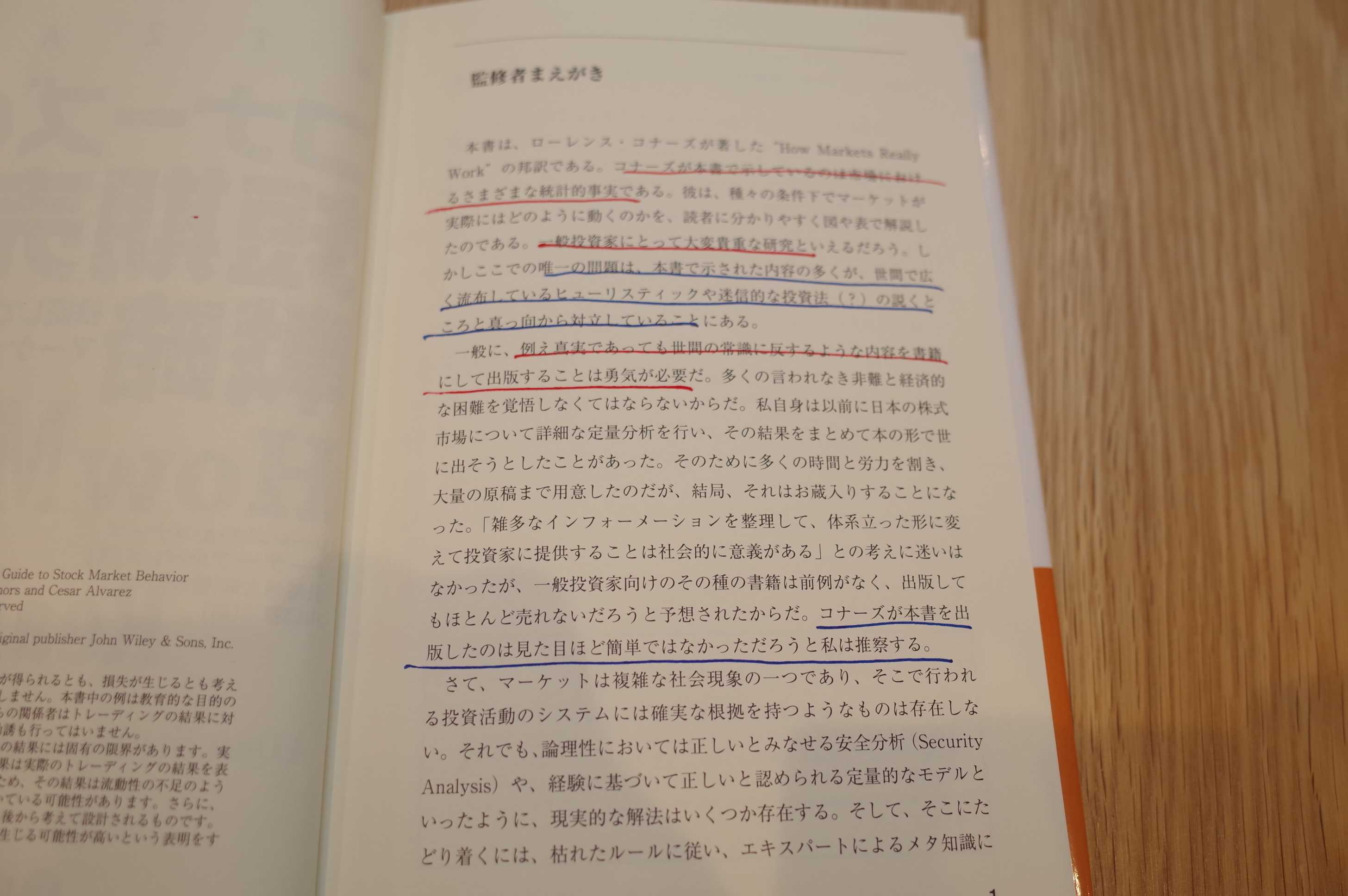 本書は、ローレンス・コナーズが著した”How Markets Really Work"の邦訳である。コナーズが本書で示しているのは市場におけるさまざまな統計的事実である。彼は、種々の条件下でマーケットが実際にはどのように動くのかを、読者に分かりやすく図や表で解説したのである。一般投資家にとって大変貴重な研究といえるだろう。しかしここでの唯一の問題は、本書で示された内容の多くが、世間で広く流布しているヒューリスティックや迷信的な投資法(?)の説くところと真っ向から対立していることにある。