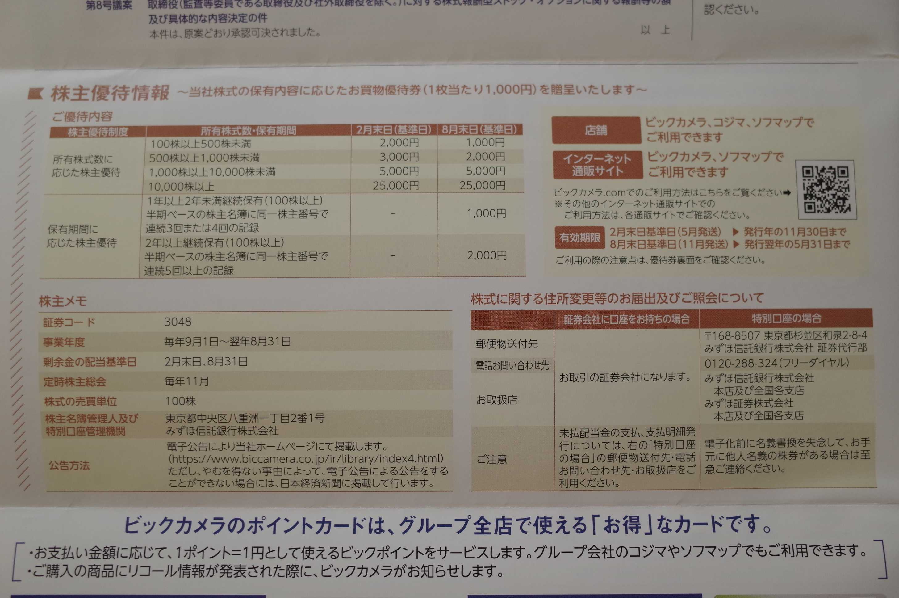 ビックカメラは指標的には今一歩ですが 、優待内容に魅力がありますし、現行の優待制度が続く限りはのんびりとホールドしていく予定です。