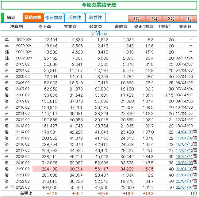 イオンモールは2021年2月期は新型コロナ襲来で最終赤字に転落しましたが、それ以外は下記の通り過去25年間はずっと黒字を維持してきています。
