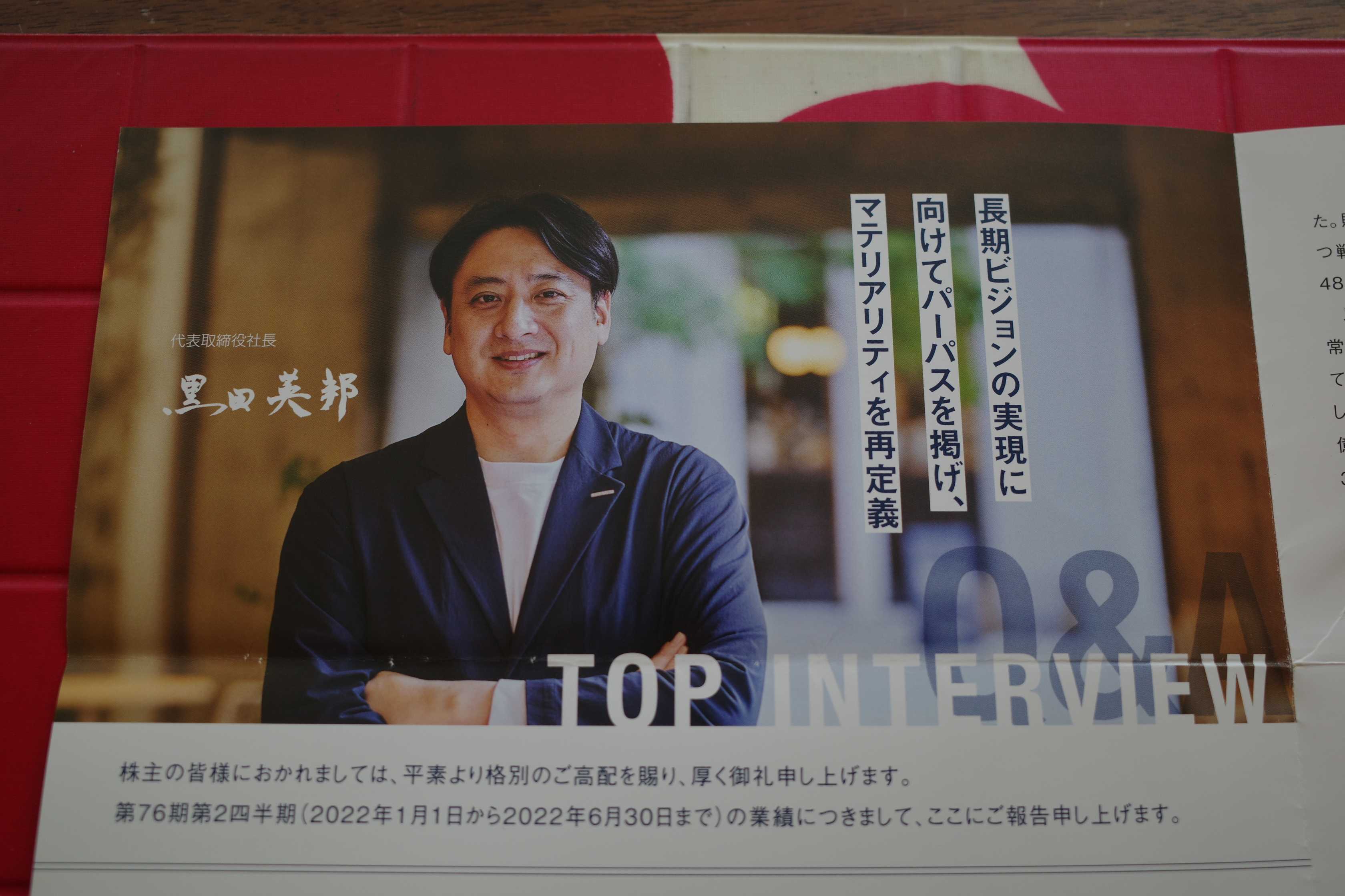 現在の株価は1790円、時価総額2304億円、PBR0.87、自己資本比率は72.9%、今期予想PER11.17、配当利回り3.2%(57円)、総合利回り3.5%(57+6=63円)で、優待は500株保有で3000円相当、1000株保有で6000円相当の 自社グループ商品(文房具)です。