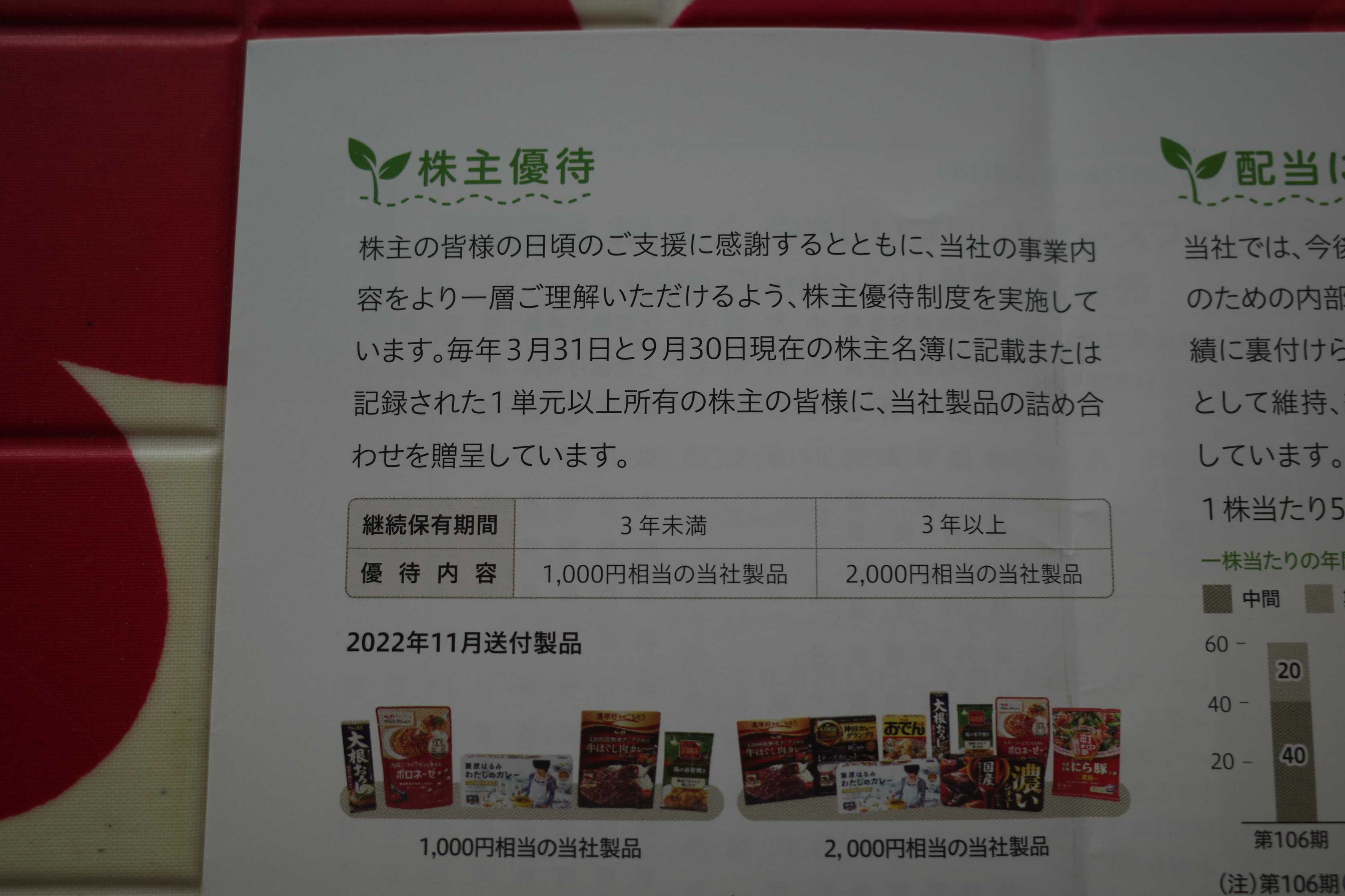 いやあ、ヱスビー食品の優待品は毎日の食生活を色彩豊かなものにしてくれますね。♬ ここは高い知名度と実力を兼ね備えた素晴らしい銘柄であり、未だに東証スタンダード所属銘柄であるというのがちょっと俄かには信じられないくらいですが、ま、これからも現行の優待制度が続く限りはのんびりとホールドして応援していく予定です。