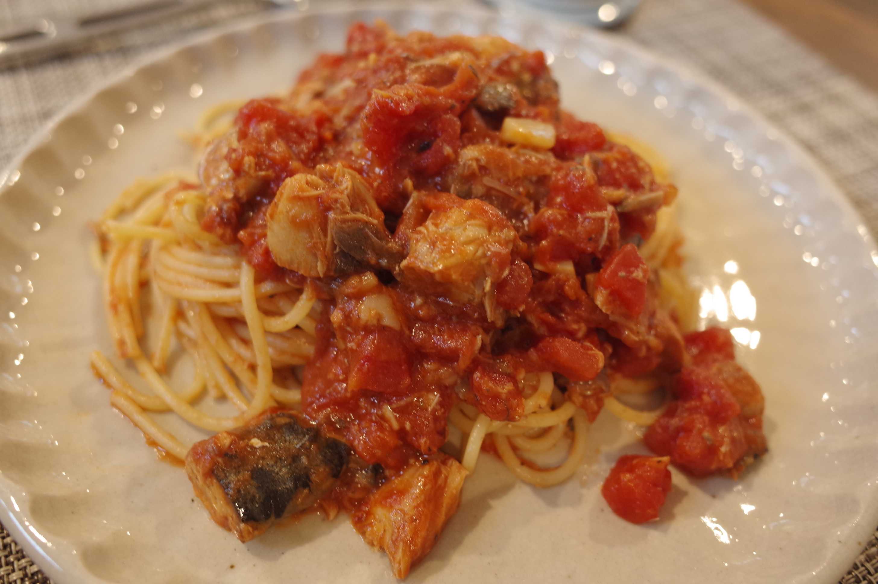 ニッスイ優待のサバたっぷりトマトパスタ