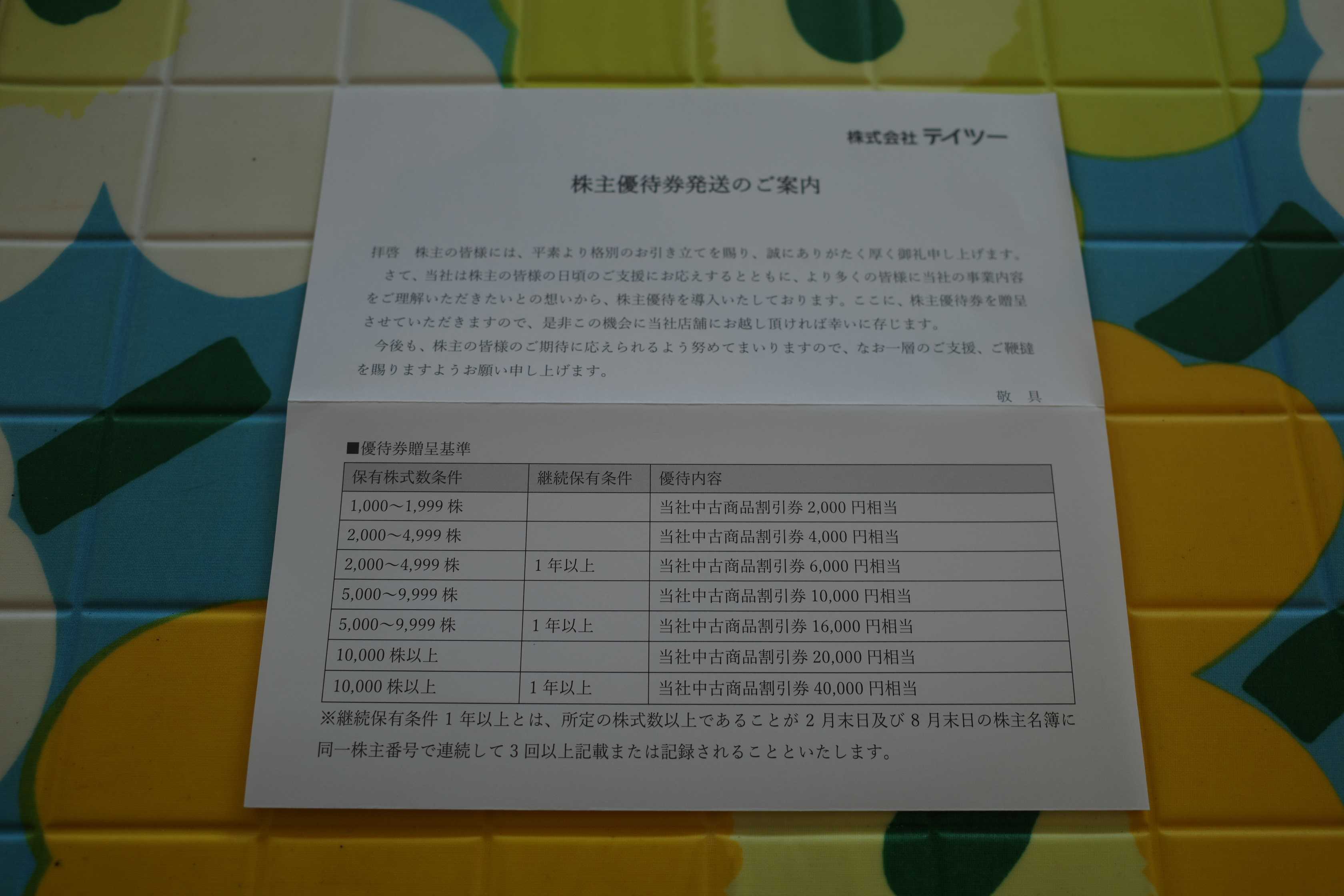 38位 7610 テイツー (東S、2月優待) ◎◎