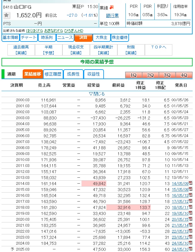 以上、山口フィナンシャル・グループは、私の ​ 「優待地銀株バルクプロジェクト2025」