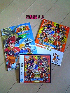 みなさん、こんばんは~ 早速ですが、1月24日(土)の大会結果を簡単にご報告させて頂きますね~1月24日(土)は、2会場の大会に参戦してまいりました 午前の部 ・ホームにてシングル戦(小学生以下)にエントリー。エントリー数は58名だったかな相変わらず、多いです...ですが、見事我が家の娘とホームで親しくさせて頂いているKパパさんの娘さんYちゃんが抽選突破ここで、抽選に漏れてしまった我が家の息子とKパパさんの息子さんIくん、そしてKパパさんとドラキーママの四人は早々に午後の別会場へ移動抽選突破を果たした二人はサイレスパパに任せて...実は、午後の会場は年齢無制限が2回行われるので... 抽選突破を果たした娘は、定番デッキ(魔法使い、ゴースト、ベビーサタン)で試合に臨みます。 ・1回戦・・・相手『戦士、オーシャンクロー、ボル&ブル』 ・2回戦・・・相手『戦士、うごくせきぞう、ダンビラムーチョ』 何とか、2回戦を突破しそして... ・準決勝・・・相手『戦士(LV99)、スライム、シールドこぞう』 相手の方に会心を出され、またこちらの攻撃も回避され惜しくも準決勝で敗退しましたでも、一歩一歩大会での勝数を増やしているのでこれからも頑張ってくれればと思います。ちなみに、この大会では、娘の準決勝での対戦相手のお子さんが優勝を果たしていました。ミニモン、やっぱり強いですね~ さて... 午後の部 ・1回目の大会模様は省略いたしましてサイレスパパと我が家の娘&Yちゃんと合流し、みんなで2回目の大会に臨みます。試合形式は、年齢無制限の2頭戦 そうです... 午後はモンバトではなく、『恐竜キング』の大会に参戦してまいりましたまだまだ私共は初心者ではありますが... 大会結果からご報告させて頂きますと... ・娘・・・2回戦敗退 ・息子・・・3回戦敗退 ・ドラキーママ・・・3回戦敗退 上出来な結果だと思います そして、我が家で唯一... ・サイレスパパ・・・1回戦敗退 家族みんな、ちょっとずつレベルが上がってきているかなぁ~と思っておりますが、1回戦で敗退してしまったサイレスパパの試合は予想外の展開で仕方ないかなぁ~と(笑) サイレスパパの対戦相手は、とっても可愛い小さなお子さんでした使用キャラは相手のお子さんがリュウタでサイレスパパがレックスです。 サイレスパパの試合、最初の1手目は相手のお子さんがじゃんけんに勝ち、サイレスパパに攻撃をします。そして、予想外の展開はここから始まりました リュウタ『何を~!!』 レックス『何だって!?』 リュウタ『何を~!!』 レックス『何だって!?』 リュウタ『何を~!!』 レックス『何だって!?』 リュウタ『何を~!!』 レックス『何だって!?』 リュウタ『何を~!!』 レックス『何だって!?』 ・・・ ・・・ ・・・ ・・・ ・・・ きっとこのセリフを見て、ポコちゃんパパ様やkozaruchan様は大笑いしているのではないかと そうなんです。お互い『パー』を出し合い(5回ぐらい)、ひたすら『アイコ』が続いてしまった単なる頭突きの試合にそして、そのままサイレスパパのティラノ(DT)ちゃんは、単なる頭突きの前に倒れ、1頭目は何もする事なく静かに幕を下ろしました(大笑) そして、サイレスパパの2頭目...ポコちゃんパパ様よりアドバイスを頂いたデッキを使用し、相手の1頭目を難なく倒すものの、サイレスパパの1頭目の無活躍がたたってしまって、相手の2頭目に惜しくも敗れてしまいましたサヨウナラ~... サイレスパパ、1頭目では『パー技』にセットした『バーニングダッシュ』(あいこの後にパーで勝つと発動する超技)を意地でも出したかったようで まだまだ、勉強不足ですね~ そんな、我が家の恐竜お勉強グッズを最後に少しご紹介致しますね~ DSのゲームにガイドブック、最新辞典などなど どさくさにまぎれてサイレスパパの最新作の『謎のオリカ』も(笑) これからも、モンバトに恐竜キング頑張って参りたいと思います それでは、今日はこの辺で...