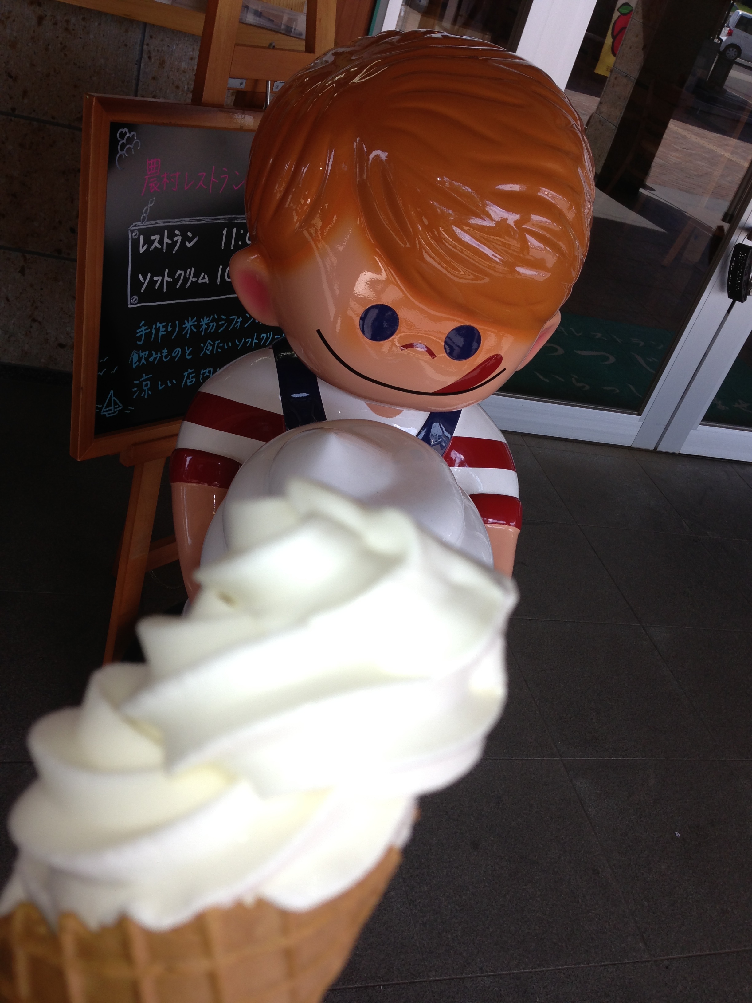 道の駅やいたで、りんごのソフトクリームをたべた。。
