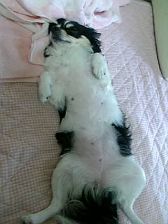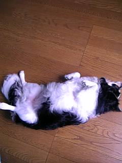 やっと長い入院生活から帰ってきた携帯電話(1ヶ月くらいかかりました)なのに取りに行ってから次の日に壊れてしまいました。しかも同じ不具合で電話がかけられないし、受けられません。でも忙しいので修理にも出しにいけず、もっぱらメール&公衆電話で生活しています。でもせっかく修理から帰ってきたのでティアラをパチリ。家に帰ってきたら網戸のそばでこんな感じで寝転んでました。広々と寝返り打ち放題で気持ちよさそうです。ちょっと暑くなると微妙に移動して新たな床の涼しさを捜し求めてさまよっています。かわいいな~と写真を撮っていたら急に方向を変えて私のスカートで膝枕です。あまり寝やすそうな体勢ではない気がするんだけど…