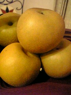 やっと梨を購入しました。たくさん梨園があるなかでmixiの地元のコミュで一番おいしいと評判だった梨園で購入。せっかくなので先日友達にお土産にもらったフルーツいれにいれて写真をとってみました。さすがにフルーツをいれるものだけあってなかなかいい安定感にいい見た目です。かわいい♪写真の机は両親がガーデニングというか庭に置くように買ったのにまだ外にだしてないので家の中なのになぜかタイルでガーデンぽくなっています。今年は天候のせいでいつもより小さいらしく、小さいのほど安いんですが、味はかわらないということで安めなほうを購入。おいしかったです。お昼ごはん代わりに梨をペロっと2個完食!!ごちそうさまでした。