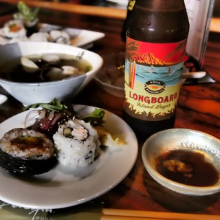 ハッピーアワー行って、6時からビールローカルビールにお寿司がいい感じです。このビール、パッケージがかわいいから好きなのロコのお友達にショックなこと聞きました!この間紹介したグアバジュース!!便秘になるらしいです。みなさん気をつけましょう。。。