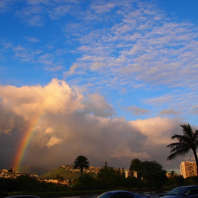 昨日はあの後、結局雨は降らないでいてくれて、あきらめていたサンセットも綺麗に見えたんだ。サンセットもとこには雨が降ってるのが見えて、雲は黒いし、不思議な光景だった。そしてすごいショートだけど(笑)ダイヤモンドヘッドとレインボー☆小腹がすいたので、ハレクラニでオニオングラタンスープ飲んでたら見えたの!でもどんどんちっちゃくなった。。