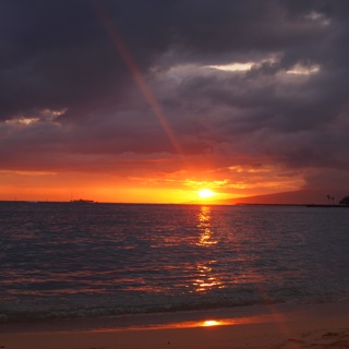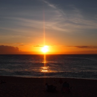 サンセットを観ることは私にとってハワイでの習慣なんです毎日ラナイからチェックして、今日はきれいだな~ってときは一人でもビーチに行ってサンセットを観ます。綺麗なだけじゃなくてそこにはすっごいエネルギーがあります。おすすめの場所はいっぱいあるので、まずはノースの帰りに観た、サンセットビーチ!その名の通りサンセットのメッカですね!2つ目は一人のときに来ることが多いワイキキのルーシービーチから。ハレクラニの横から行くビーチだよ。サンセットの時間はたくさんの人が集まってきます。