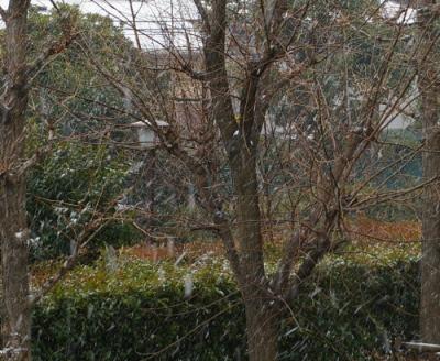 前回は夜中だったので見逃してしまいましたが、今朝の窓の外は うっすらと雪化粧の景色。やがて雨に変わるまでの 束の間の静寂。