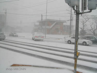 鈴鹿に住むようになってから、初めて聞く警報!自転車通学の子供たちはこけまくり、自動車ものろのろ・・・・歩いている人たちも雪だるまのよう。どうなっちゃってるの?先日購入した、雪かき用のスコップで雪を取ってもとっても積もっちゃう!きりがないので、とりあえず止めました。今日入荷の荷物も4時にお客さんが取りにみえるのにまだ届いていません。↑むっちゃ焦っている。とにかく、今日は来客がないのはしょうがない!でもでも、荷物は早く来て!!!本日発送の商品も届いてないし~~~(T-T)