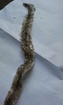 これなんだとおもいます???ヘビの抜け殻なんです。実家から送ってきたんですが、1匹分です。。。すごい!!