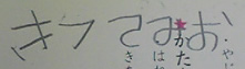 妹のこども(姪)に絵本を送ってやろうと昔懐かしい、子供たちが幼稚園の頃に読んでいた絵本を片付けたらむすめの小さい頃の字をみつけてしまった。。。長男の文字練習帳に自分も勉強をしているつもりで書いたであろう娘の字最初、こんな感じの名前がこんな感じに直してあったけど。。。たぶん3つ~4つぐらいの頃だと思う(定かではない)懐かしい~~
