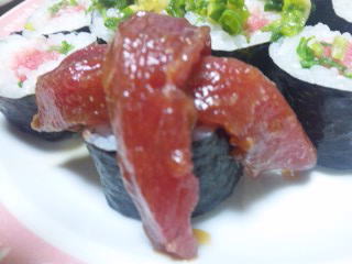 たまに無性に。鉄火巻きの上にさらに切り身をのせる。こんな贅沢をしてみたい3連休前の夜だぜ。