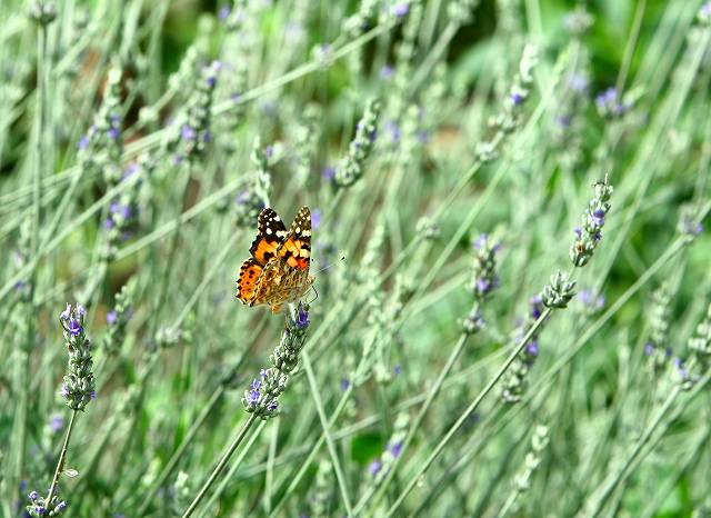 朝早く友達の花畑に、ヒメタテハ蝶見つける、シメシメ・・・・今日はデッカイレンズでラベンダーの中に、気持ち良さそうだ・・・EF70-200f2.8L IS USM 私には重いですラベンダーがお好きのようです。これは我家のダリア マジックモメントの2番花、花火のようになって来ましたよ