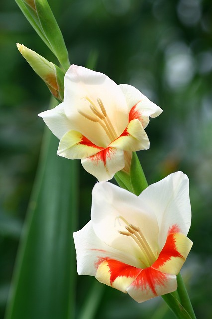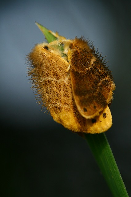 みなさぁ~んこんなの見たこと有りますか?・・・私は初めてです可愛い、とっても可愛いのよ・・・買い物から帰ってきて我家のグラジオラスの葉っぱだけの所見ると、頭の所に何か付いてゆらゆらしてるんです。ちょっと見たくらいでは、何だか解りませんでしたが、良く見ると 蛾ちゃん同士が葉っぱをはさんでハグハグしてるんですね。交尾でしょうか?じっと見てると、「もっとこっちにおいでよ」なぁ~んて時々手を伸ばしたりしてるのよ見てね解るかなぁ~お目目が可愛いじゃない・・・蛾らしいから大きい方が♀で小さい濃い茶の方が♂なんだろうか?カメラを取りに行って帰ってきても、まだまだじっと動きません 二人の世界のままなの・・・中央にあるのがグラジオラスの葉っぱなのよ・・・お団子を串刺しにしたような感じね。本当にこんなの始めて見ました。何を話してるんでしょうね。暑いときにこの外套では暑いわね。でもでも、♪もっとお寄りよ離れずに♪踊ろうよ・・・・・・・・・・・夢の世界さぁ~♪古い歌思い出しちゃった ははぁ~想像しすぎかな?~~~~~~~~~~~~~~~~~~~~~~~気を取り直して我家のむくげです 咲き始めました。このむくげは鉢植えです今年は一杯蕾が付いて居ます。これは一輪のみ咲きました ゼフィランサス で合ってるかな?道端にこんな花が咲いてるんですが確か去年名前を調べたような記憶はあるんですが
