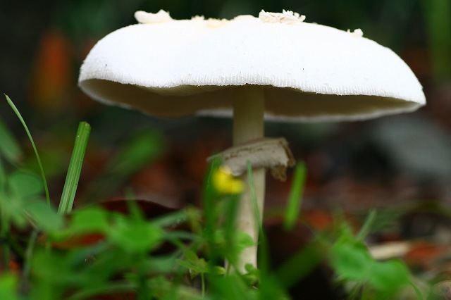 じめじめしてる今日この頃道路脇にこんなきのこが、生えていました。笠の直径11センチ 高さ12センチ案外大きいので目に留まります上から見たところ毒キノコでしょうが真っ白で、大きいから目立ちます名前は何と言うのでしょうね私も始めて見ました。我家では 角トラノオと言うのかな大きなお口を空けて、雨の歌でも歌ってるのでしょうか?賑やかです。上のお花(角子)が下のお花(トラ子)に「あんたも歌いなさいよ」なんて言ってるみたいねぇ~ トラ子歌う・・・・♪ 雨は降る降る 人馬は濡れるぅ~♪ 越すに越されぬ田原坂~ 角子 (なんじゃ民謡にしたん?) トラ子( 悪いけ?) 角子 (若さがないけんねぇ~) トラ子(ほじゃけど、若い雨の歌なんか知らんがな、) 角子( あるがな、あるがな、♪ ピチピチチャプチャプらんらんらん これや若いで)~~~~~~~~~~~~~~~~~~~~~~~~~~~お花が伊予弁でこんな話しとったら、うるさいやろなぁ~ ははは