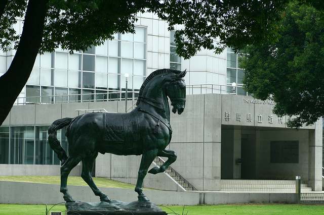 車で35分くらいかな群馬の森まで出かける蝶にでも出会えるかなと思っていましたがなかなか蝶は我家近辺の方が沢山居ます。群馬県立近代美術館があるのです。敷地は広いですよ群馬らしくカッコいいお馬さんが迎えてくれます。夏休みなので、子供が虫取りに来ていました。もう蝉の鳴き声がうるさい位なんですが、子供達にゲットされるような蝉は居たのかな?僕もさっきから網を振り回しているのですが・・・・・ベンチは至る所にあって、一休み出来ますどうぞおかけ下さいませこんなカッコいいお休み場所も有ります。森の奥は案外深いですよ、迷子になりそうです。朝のジョギングの人が一杯居ました。方向音痴の私は、私の帰るとこ何処でしょう?てな事は聞けないから・・・「駐車場はどちらでしょうか」?なんてカッコつけましたが、ふふふ何処からどうして、どうなってるの???ふるいですねぇ~人生のもつれ?どう解くの?お花にもあって無事駐車場まで帰ってきました。ははは 呆れた人ね!