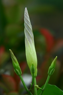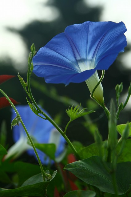 西洋朝顔(フライングソーサー)白に紫の絞りです買ってきたときの写真タグはね、とうとう蕾がつきました。これですまだ期待が持てるよね↓昨年のまろんちゃん家に憧れてから一年です。明日は白に紫の斑入り絞りが咲く!!楽しみにして・・・明日は早く起きて爽やかな白に紫の斑入りの朝顔がゲットできるこの時点までは、楽しみにして、朝が来ました。こんなん出ましたけど????えぇ~うそぉ~何度も何度も白じゃないの、斑入りじゃないの うそぉ~?????こんなのありぃ~このお花さんには罪はありません、マリンブルーのこの色も爽やかな朝顔ですが、余りに落胆が大きすぎます。今朝も咲いてくれていますがもう写真撮る元気がありません。タグの挿し間違いでしょうね。お花関係の方、タグの刺し間違いには充分気をつけてください。夢がしぼんでしまいます。もう一つは(ガーディナルクライマー)でサルビアの様な赤が咲く予定ですが、こちらはまだ蕾みも出ていません、この分だとまったく解らなくなりました。ショボン~~~~~~~~~~~~~~~~~~~~~~~~これはお友達の花畑にニョキニョキとマンジュシャゲの様に出てきて咲いて居ます今一名前が解りません知ってる人教えてね!~~~~~~~~~~~~~~~~~~~~~~~~~~~~~~~~がっくりの 私でした白に紫の絞りが欲しい・・・・
