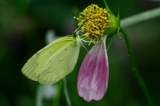 御近所、いつもお留守のお家、蝶の好きな 黄花コスモス、メドーセージ、百日紅、がお庭一杯の御家があるんです。いつも蝶が居る確立高いんです。今日もそっと裏の方なので、見に行って見ました。来て居ます。慌ててカメラ取りに帰る。誰も居ないので失礼させていただきました。2時間・・・・道端なので・・・これはツマグロヒョウモンの♂です。♂2匹がお花争い2匹とも♂です。これはマクロでなく望遠です 交換レンズEF70-200f2,8L IS USM これで狙いました。重かった・・・それにしても、黄花コスモス、は大好きですね、蝶は・・・こちらは 黄タテハ蝶 今まで羽根を開くとどちらもヒョウモンなので、解り難かったですが今日で違いがはっきりしました。黄タテハは直ぐ飛んでいってしまいました。このツマグロヒョウモン♂ は ヒラヒラと長い間楽しませてくれました私の出で立ちは白のツバビロ帽子に半そでTシャツ(黄色)に車の運転をする時の長い指の出る手袋(白)長い夏のパンツに首にはトレードマークの日本手ぬぐい(大好きなんです)どんよりしていますが汗は後から後から出てきます・・・・なかなか羽根は開いてくれませんでしたが、花が変わった時連写でゲットです黄タテハと比べてみてね ここの一番下に黄タテハが羽根を広げて居ます。ヒョウモンチョウと書いていますが、これが黄タテハです。羽根をたたむと 全然違う蝶みたいですねオリボンの様にも・・・綺麗な蝶です 蝶を追っかけるお陰で蝶の習性とかいろいろな事が解ってきます。これもまた面白いですね。