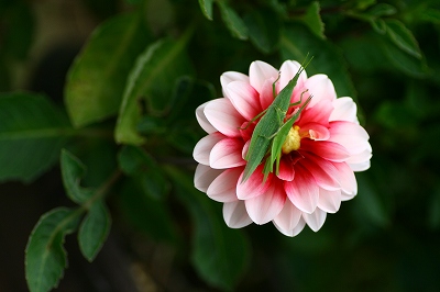 今日も、案外良い日だなぁ~と朝7時表のポンポンダリヤを見てみると?何やら居るぞ?良く見てみると、まぁ~親子で可愛い、と最初は思いました。ね!これです可愛いでしょう?親子かな?そう思っていると、ところがどっこい親子でなく、♂(小さい方)♀(大きい方)だと解る・・・・横恋慕♂が側にやってきました。オスは勇敢にも左足でキック!そのとたん雌は花びらに手が刺さりました。俺の彼女だぜあっちに行け!とキックの連続このあたりでもう交尾がされてる事にきずく・・・・右よりやれやれやっとゆっくり何て思っているのかなでも負けたオスも花の裏側に未練たらしくいるんですよ(雌の触覚の先に)ちょこんとチョキが見えてるでしょうほれ!又現れました。オスはメスの背の上で何故だか両足を上げて居ます。嬉しいのでしょうか?何度も、何度もよ、左で羨ましそうに見ているもう一匹のオス(これで合体してるのが解ります?)いつまで経っても側をどかない横恋慕のオス♂さてさてどうなるの?まだ合体中・・・やっと最終と成った様でまたオスは両足をあげ勝利宣言?花の裏側からまだ覗いて居ます。(覗き趣味か?)そして、オスの生殖器があんなに伸びるのもびっくり・・・・やっと雌の背から雄くん降りる・・・さぁ~どうなると思う???今まで仲良ししていたのに、もう一度雄が雌の背に上がろうとしたのそしたら雌は拒否此処から戦いが始まりました。雄のパンチ、雌のキック・・・ダリヤの上が戦場に、まだ覗き君は居るのよ・・・激しくやりました暫く・・・でも二度と雌は受け付けなかったですこの後すごすごとダリヤの葉っぱの中へ雄は、消えていきました。覗きくんも消えました。1時間ももっとかなぁ~観察したかなぁ~・・・バッタの世界も厳しいぃ~と思いました。