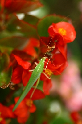 これはキリギリスなのでしょうか?水遣りの時ベゴニアの中から出てきました。私に見つけられると、我家の小さきものたちは直ぐモデルです。ハイ!絞り開放(2.8)三脚ありシャッター80位だったかな?納得できずと言っても余り鮮やかな花の上なので・・・仕方ないのよね移動してもらう事できないんだから・・・そしてあの枯れてる花ガラも取りたいんですが・・それも出来ません。あまり鮮やかなベゴニアの上なので慌てて今度はソフトフォーカス掛けてみましたが如何でしょう・・・↓こちらはソフトフォーカスフィルター掛けました。絞りも開放(2.8)三脚でピントだけはしっかり合わせましたが・・・多少ゴソゴソと動き出しました。夜になると、どんな鳴き声なんでしょう?朝の水遣りほっぽりだして・・・・撮りましたがバックがなんせ派手すぎよね~~~~~~~~~~~~~~~~~~~~~~~~~~~~~~~恐れ多くも 県展に出品し 4点全部外れて 引き取りに行って来ました(前橋迄)。審査員の方とお話が出来ました。レベルがだんだん上がってきて居ますよとのことまだまだ遠きこの道よ、めげては居ませんが・・・・もっと良い作品を作るぞ!明日はボランティアが入って居ます頑張ってきます。