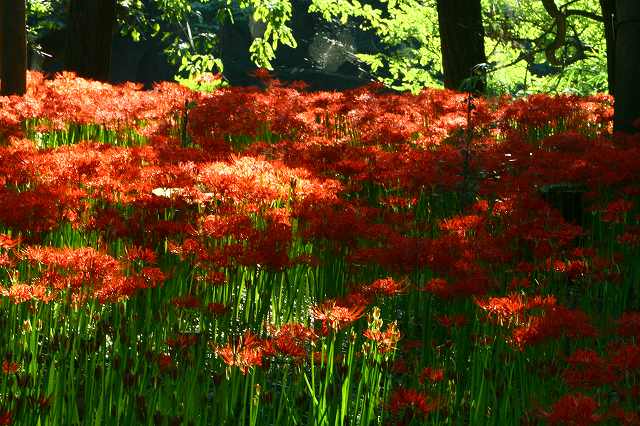我々写真仲間6名、朝5時半出発、人が多いから写真を撮るなら人の居ないうちにと巾着田に着いたのが、6時50分頃でした。まだ駐車場に車が10台余りでした。私は初めてです。いや凄い丁度お花も良いときです。逆光に照らされて緑が綺麗でしょう向こう側は川(高麗川)です兎に角沢山の彼岸花です木の上から一輪綺麗でした。スポットがお花に入るのを待って・・・・もう何処でもこんな感じでお花が一杯です川岸に仲良く・・・下の雑草が可愛いでしょう高麗川 が見えて・・・彼岸花に来てるスポットが綺麗でしょうヤドリギのように古木に宿って居ます。最後は広角でEF10-22ですその他は交換レンズEF70-200f/2.8L IS USM です3時間撮影してお昼には我家に帰ってきました。案外近いんですねぇ~帰る頃にはもう駐車場も一杯、観光バスも駐車待ちの状態です。お気の毒様ですなんて感じで帰ってきました。楽しかった!皆様ありがとう御座いました。