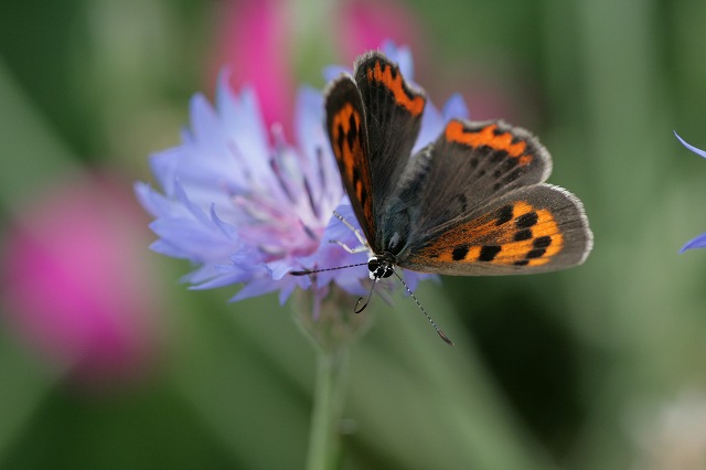 又今年も蝶の季節がやってきましたおぅ~いきなりお友達の花畑に行くとLOVEの蝶です。メドウセージの葉っぱの上です。はぁ~いゲット友達の花畑は今年も帝王貝細工の花が豪華です。今摘み取るのがドライには丁度良いのですが・・・・このお花は摘み取ってからもどんどん咲いて行きますから・・・しもつけ、のお花これも可愛いですねぇ~我家にはありません私がカメラで、恋路の邪魔をしましたら、連なったまま飛んでこんな所に止まりました下の方が雌かな上が雄かな?オスのほうが引っ張って飛んでいましたから・・・お花は良いですねぇ~癒されます。LOVEの蝶しつこく追いかけました。