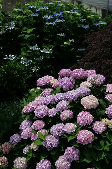 我家もやっと紫陽花に色が付いてきました私の剪定の仕方も良かったのでしょうか?一杯花を付けました一輪UPですこれは昨年紫ピンクのような色の紫陽花を戴いてきて挿し芽したのですが今年咲いてみるとピンクの優しい色です。こちらは花びらが丸いでしょう・・・・種類は上のと違うのですがこの額紫陽花も色の付始めですこの額紫陽花も変わって居ます周りは白です、後ブルーの丸い紫陽花と、くみこと言う名前の紫陽花はまだ色が付きません。本当に紫陽花の時期になって来ましたねぇ~☆ 弾む日は 紫陽花も直 弾む色