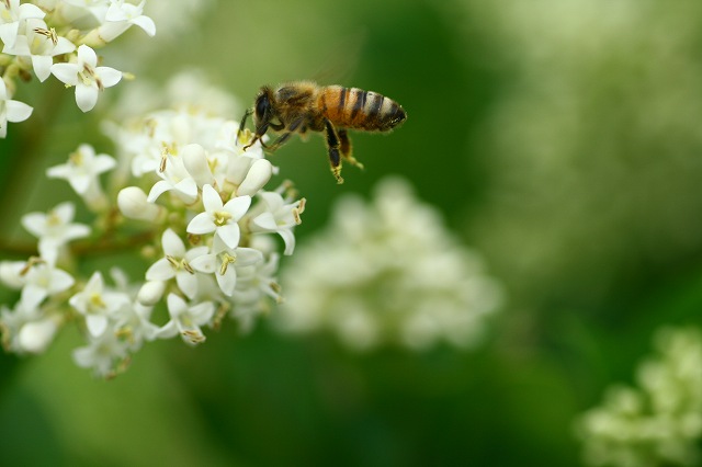 蜂がブンブン言ってる何かなと振り向くとこんなシーンに出会うこの小さな(1.5cm)虫を見つけた蜂さんは~いゲットです・・・・しっかり口ではさんで暴れるのを押さえつけて居ます。この後空に向かってこの餌?を持ったまま飛んで行きました。暫くして又やってきました今度は死んだ振りして下に落ちてしまってる虫君を下に降りて、素早くゲット又空高く飛んで行きました。何度も何度も、このこうけいを繰り返していました。我が家の小紫式部に付いた青虫君です。蜂さん取ってくれて ありがとう・・・我が家の小紫式部は花が全部青虫に食べられて居ます。自然界もなかなか厳しいんですねぇ~1時間以上観察しました。草食系でなく肉食系の蜂さんだったんですね・・・・こんなシーン見たの初めてでした。~~~~~~~~~~~~~~~~~~~~お口直しにありふれた 涼しげな我が家の額紫陽花 これも挿し芽からですこの色のゆりが咲き始めました。昨年のお芋を採っておいて植えました2年目マイエンジェルも、むくげに巻き付いて花を咲かせて居ます。まろんちゃん家よりお嫁に来てもう何年かなぁ~頑張って居ますよ。人差し指の先位の大きさです。今日は蒸し暑く雨もパラパラと降ってきましたねぇ~
