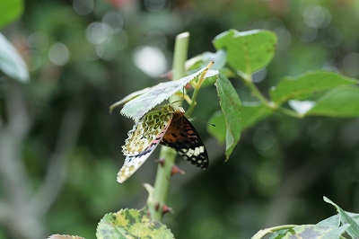 今夜は此処で休ませていただこう、とばかりツマグロヒョウモンの♀が薔薇の病葉(わくらば)に今夜の宿を取りに来ましたよはい!薔薇の葉っぱの裏にぶら下がって止まりかけました・・・ツマグロヒョウモン♀ですもう決めてしまったみたいで、羽根を畳んでしまいました。夕暮れてるから ISO→1600 手持ちで撮って居ます。今年は薔薇に黒点病が付いて困って居ます。この点々がそうです病葉(わくらば)です。羽根を閉じてしまうと♂、♀、の見分けが付きにくいのですが・・・大き目の蝶です。うんうん一夜の宿を貸そう、ゆっくりみこちゃん家でお休み・・・・~~~~~~~~~~~~~~~~~~~~~~~~~~~~~~~むくげの花も咲きましたよ、今年は蕾が一杯です。この2輪が一番組みです夕方撮りましたので、幻想的 でしょうか?やっぱり ISO上げて居ます。白の ムクゲ ちゃんです~~~~~~~~~~~~~~~~~~~~~~~~~~~~~~~今サッカーチームは日本への飛行機の中でしょうか?少しまだ悔しいですが、でも、みんな良くやりましたねぇ~朝の3時頃まで見ていました。帰ってきたら皆を本当に褒めてあげたいですねぇ~ 快挙ですよ!タイプ中澤、!