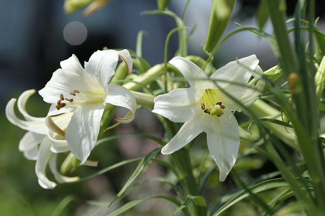 猛暑!猛暑の毎日ですねぇ~今日は和歌山に居た頃の事をちょっと書いてみようかな、西浜と言う所に当時4階建てのビル社宅がありまして、4階に居ました。和歌山工業高校が、道路を挟んで直ぐ斜め前にありました。和歌山商業高校のチャイムも聞こえてきましたねぇ~それから、今でも忘れないのは、12時(お昼)に成ると和歌山城から「てんてんてまり」のミュージックサイレンが鳴るのです。♪てんてんてんまり ・・・・・表の通りへ飛んでった♪あれは未だに忘れられない良い思い出です。(今でも鳴ってるのかなぁ~)丸正百貨店(和歌山では一番大きな百貨店)、ぶらくり町、一番賑やかな場所です。今は風の便りに丸正百貨店は無くなってるとか・・・・自転車で5分も走れば、漁港 海です、突堤があり、今頃でしょうか鯵のサビキ・・・面白い位、私でもサビケましたよ。新和歌、雑賀崎(さいかざき)漁師町ですよねぇ~運が良ければ主人等、海水魚のチョウチョウウオが、すくえました。新和歌の方に家族4人潮干狩りに行って、物凄い人出でした。夢中で貝を掘ってるうちに、長男が居なくなり主人と二人真っ青に成り、そのあたりの海辺に浮いて無いかと、捜しまわりました。あの時間の長かった事、今思い出してもぞっとします。結局は迷子の所にちんまり腰掛けていたのですが・・・・親の方が泣けましたよ 和歌山弁、市場で魚の生きが良い時・・・「奥さんこの魚 美しいしょ」 「そやしょ」 「連れもていこら」(一緒に行きましょう)いやいや昔のお話失礼致しました。~~~~~~~~~~~~~~~~~~~~~~~~~~~~~次々暑くても咲いて居ます、チャメさんありがとう「高砂ゆり」ですってね 猛暑に負けず 涼しそうですね