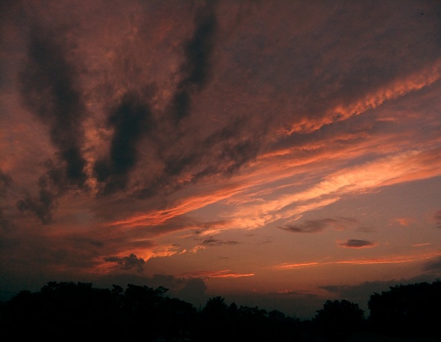 今日は最後に回していました水槽のお掃除2匹の金魚のために・・・・奇麗になりましたが暑かったです!我が家の仲良し金魚君達 お掃除の後で・・・ねぇ~奇麗になってうれしいねぇ~少しピントボケてるけどねぇ~”気に入らんねぇ~”買って来たときの倍位になってます チュッ!チュッ!最後に私、朱文ちゃんの スイー ですねぇ~群馬は こんなドラゴンの夕焼けでした 龍馬かな?段々と暗くなって 真っ赤になって来ました。龍の昇天?・・・・最近にない奇麗な夕焼けでした。近くの橋まで、自転車走らせましたが、日は沈んでしまい間に合いませんでしたがその後にこんなショーを見せてくれました。