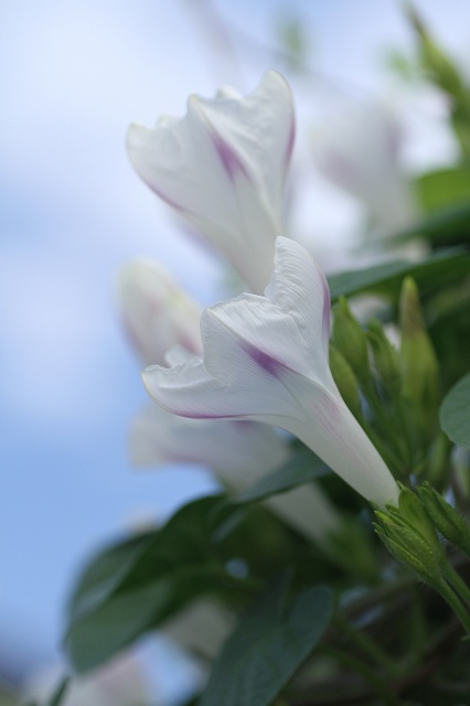 昨夜は やっと涼しい夜でしたねぇ~雨がたくさん降り過ぎて災害が発生してる所もあり一概には喜べませんが、昨日は私も泳ぎに行って来ました。久しぶりだから少し泳いだら帰ろうと思っていたのに、泳ぎ始めると これまた良い気持ちで・・・800位も泳いだかなぁ~少しやりすぎました。と言うのも、ワンレーンで二人で泳いでいたのです。もう一人は知らない殿方です。普通互い違いに泳いで来るのですが・・・・私が背泳で向こうに着いても その殿方は、まだクロールなのに向こうに着いていません。着くのを待ってこちらからスタートします。何度やっても殿方は私より遅いのです・・・ふふふ今まで何年もジムに通っていて、こんな事は、初めてです。嬉しくなっちゃったんです私、その男性は50歳位かなぁ~いやもっと若いかも??私に負けても止めないんです。私も面白く成っちゃって、男性を追い立てるなんて嬉しいですよね。止められませんでした。ちょっと優越感を感じた一時でした、そんなこんなで・・・はひふへほっほ!~~~~~~~~~~~~~~~~~~~~~~~~~~西洋朝顔の強さこれは根っこを 切らない 時の先先日の西洋朝顔 筋がピンク色でしょうこれ昨日、根本を切ってしまった同じ西洋朝顔・・・・・ピンクでなく紫になりましたが咲いております。雨が降ったからでしょうね。今朝ですまだ蕾みも一杯ですが・・・・・こんな具合で開いて咲いて居ます根っこは切ってしまって居ます。今までは開かなかったのです。一番上の写真くらい開いてお終いでした。が雨が降り 最後の美しさを魅せてくれたんでしょうね。可哀想なようなんですが、余りクレマチスと重なり合った場所から、西洋朝顔が出てるもんで、白のクレマチスを優先させて、(新しい芽が出てきたので)朝顔は御遠慮いただいたのでした。一杯咲いて居ますが明日はもう駄目でしょう これだけ今日照ってるからねぇ~~~~~~~~~~~~~~~~~~~~~~~~~~最後に今咲いてる我が家のムラサキゴテン です