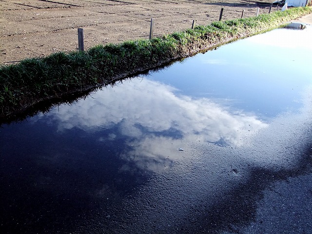 午後になって不思議青空が出てきました。コンデジ持って悠悠と散歩田舎の広瀬川沿いの道路、雨がまだ引かなくて青空を写して居ます例の仲良し二人の様子秋ですねぇ~長い影・・・・・長いと言えば笑い話があります、先日彼岸花の三ツ木で、三脚を一杯に伸ばして・・・私が、「私しゃ も少し背が欲しい・・・」と言ったら、横のおじさんが大丈夫、今横に伸びてるから、次には上に伸びるから・・・・とそう言うのよ・・・余りタイミングがよかったので、そこいらじゅうの人皆で笑い転げ、私はじだんだ踏んで「もぅ~」 おじさんは又「牛かい?」いやぁ~久しぶりに大阪思い出しました。上州でこんな掛け合いが出来るとは、おもろいでんなぁ~大阪のおじさんやったんかいなぁ~聞かなんだけど・・・・・ははは~~~~~~~~~~~~~~~~~~~~~~~~~~~~~~~~~~此処からは、ニャンの言い分今日です道路で、出会ってすぐ悠悠の前でこれです、可愛いわんちゃん遊んでぇ~とネッコロがリました。びっくり! 悠悠 「わん!わん!いややわん」私だって首輪も鈴もつけてるニャン ねぇ~だめぇ~? 蚤なんかいないからさ!寂しい ニャン涙出そう ニャン 悠悠 「激しく、嫌やワン ワン ワン」なら 悠悠ちゃんこんな事できる? 私出来ちゃうニャン 可愛いでしょうお友達になっておいでよ、おいで、 此処暖かいんだよ、ねぇ~ そんなに吠えないでよ。こんなにサービスしたのに、怒ったよ! もう良いニャン 帰るからバ~イ・・・・とすたこらさっさと帰って行きました。変な猫ちゃんでした。悠悠の直ぐ前でこれだけやって帰って行きました。??????ニャンなの????