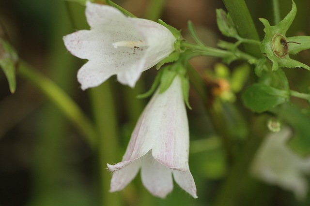 まずは紫陽花の中にまぎれて、ホタルブクロが弱弱しく咲いて居ます、お花が2輪開いたら自分で立っていられなくて、花芯が細いから、地べたに、ねっころがって居ました。クリスマスのジングルベルのように↓後は咲いていませんこれきりです。これも隠れた所にヤブラン?ムラサキラン?どっちでしょう、これは小鳥が運んできたものだと思います。もう一つこれは昔 お友達から頂いたもの、毎年白い花を咲かせます。何個も咲いていましたが、今まで忘れ去られていました。今日は忘れられていたような、地味なお花ばかり上げてみました。何時までこの暑さ続くのでしょう・・・生きる為には、耐えなければ・・・情け無い事!