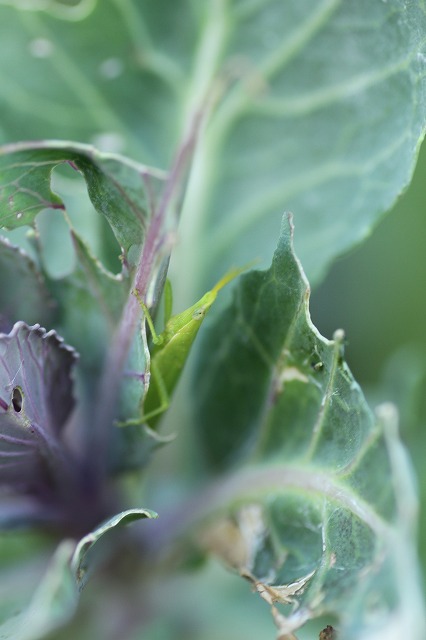 俺様が葉牡丹食っちゃいました!と言う不適のやからが現われました何とこれが犯人です、この体長2.5センチ位の子、一匹目そして2匹目も又見てる所で、あれよあれよと、食っていきます。バリバリ バリバリ・・・・これ2匹目、ショウリョウバッタの雄です昨日は雌もいまして・・・もう葉牡丹は可愛そうな状態です。おどり葉牡丹を作ろうと、頑張ってるのに・・・・君達は、水遣りで追っても追っても又次の日には現われます。もう~~~~~~~~~~~~~~~~~~~~~~~~クレマチス(鉄線)咲きました今度は小ぶりですが、まともなのが・・・・は~い 2輪並んで咲きました。明日もう一輪咲くかな?ね! 蕾があるでしょう明日は無理か?楽しみ・・・今日も暑かったですねぇ~この暑い中、お茶をしよう のお誘いあり、喫茶に出て行きましたが、もう手や顔が痛い!四方山話に花を咲かせ4時頃帰って来ました。(2時間半程)