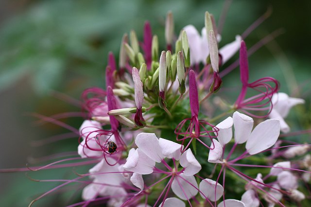 先程より物凄い雨になって来ました。午前中に撮った写真を我が家のピンクのハマユウ6個~7個目が又咲きました。まだ蕾が10個位はあるでしょう楽しみです朝練の写真(朝はまだ雨が降らず、歩けました)これは何?突然変異か?虫のイタズラか?不思議です空に浮かせて見ようか・・こうなのよ????やっぱ虫のいたずらかなぁ~それにしても、面白いものみっけ!でしょう 太陽の塔のモニュメントの一部の様鴨君は寂しそう 一匹のみウロウロして居ました。はぐれ鴨?そうか「僕一人がいいんだ」タイプかも知れないね!このお家はゴーヤも食べ飽きたらしいですね10個見っけ皆さんは?朝練 途中のお家の朝顔まだ頑張って居ます(コンデジです)~~~~~~~~~~~~~~~~~~~~~~~~~~~~~~~気になってカメムシもう一度クレオメ今朝行ってみました居たのよ!この子私が着いた途端に飛んできました。このお花がお気に入りね交換レンズTAMURON SP60 F2今朝午前中にもう一度・・・交換レンズTAMURON18-270これを撮る時は暑かった・・・汗がタラタラ落ちて居ました。この花も上手く納めるの難しい