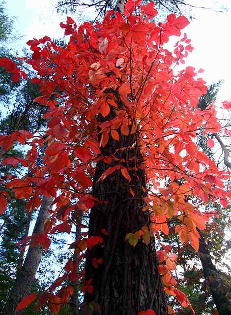 草津の蔦うるし紅葉 秋のベストドレッサーでしょう縮専で縮小してるんですが今回始めて何度やっても、本物はピントきちんと合ってるんですが、赤がボケたようになるのです。こちらはまだましなほう根本を写したのは大丈夫でしょう ☆↑この木の苔がどうでしょう緑青色・・・こちらが特に酷いのです、↑アンダーだからでしょうか元画像はボケてないのですよこれは”縮専”で平気ですこの場所に何本か綺麗なのがありましたが、特にこの2本かなもう色づいて居ました鎧脱ぎの池の近くシャクナゲ?とシダの色の取り合わせが面白いかなと思ったのですが?中途半端此処に行った時は交換レンズを広角(EF10-22)のみぶらさげて、後は車に置きっぱなしで、失敗の巻き・・・・・・こんなんばっかりや!サザボン
