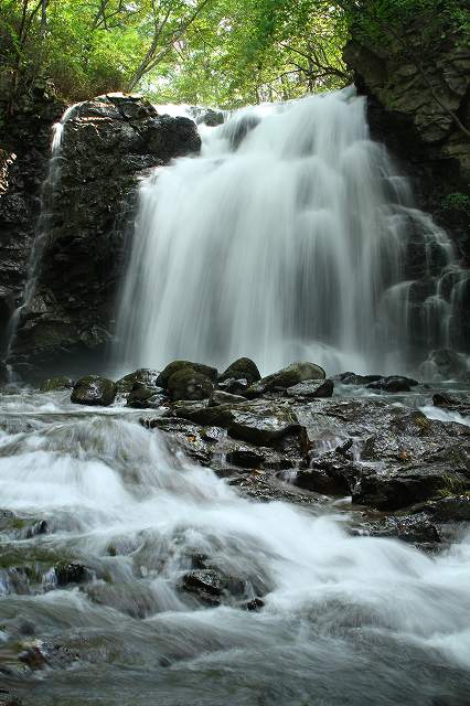 浅間大滝をUPしてみますシャッター速度はどうでしょう?水量は多かったです。岩のテカリは抑えないで撮りました補正が上のよりアンダーにして見ました大滝の下側の滝です。光りが入るまでしばし待ちました。今来たパチリ!上のシャッター速度より速いと思います。これはその下の、魚止めの滝 名前の通り魚もこんなに入り組んで居れば止められますよねぇ~シャッター早いですか?こちらのシャッター速度の方が良い様ですねぇ~兎に角お初ですので滝の水量とシャッター速度・・・手探りですこれは経験が必要だと思いました。何度も慣れないと駄目ですねぇ~お粗末様です