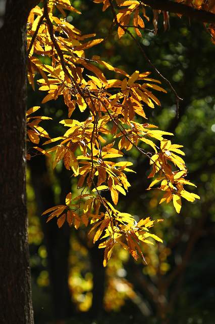 公園のどんぐり、まてばしい、等の紅葉です全体は余り綺麗ではありませんが、綺麗な所を切り取りです。光りはどんどん移動していきます。来た来たってな感じです。切り取る場所によってバックも変わってきます。それが面白いです光りの移動も早い・・・4枚とも同じ木です。こんなに遊ばせてくれますいやこれもそうです5枚かな?この木の下にひざまずいて、カメラをかまえ、光りの移動を楽しみました。これはどんぐりの木、かなり大きなどんぐりが 落ちて居ますどんぐりの木どんぐりチームです。今日だと、もうこの光りが有りません。公園の山茶花・・風が吹いて寒かったけど、今日では撮れない写真です。(光が無いから)前の日の公園の小川の枯葉は昨日行った時、もう一度デジイチで撮りたかったのですが、公園のお掃除が入って全部枯葉をすくい上げてありました。写真はやっぱりチャンスがあるんだ!そう思いました。