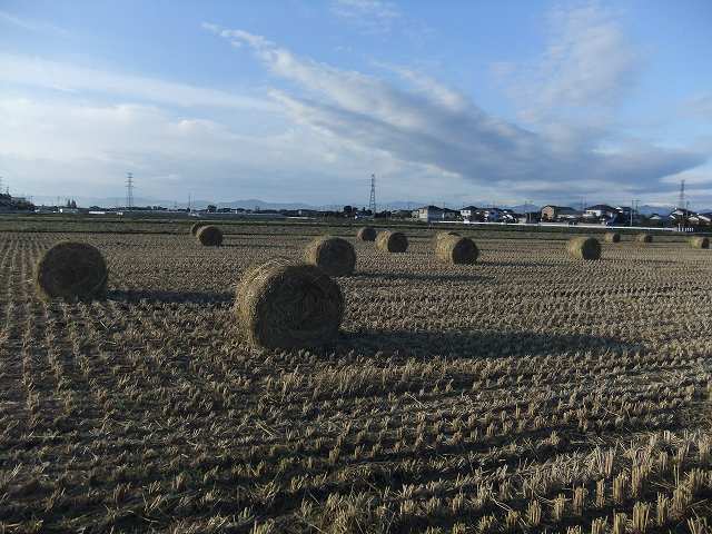 昔の田んぼの風情なら四国では「藁ぐろ」島村の渡しさんが「藁ぼっち」群馬では何と言うのかなぁ~そんな感じで、田んぼに藁が積み上げられるのだが・・・・・こんな感じに現在では成りました。北海道では麦稈(ばっかん)ロール・・・麦でない米藁だから米稈(べいかん)ロール?かなぁ~機械が入ってあっという間にこの風情です今朝の風情です 何だかピント来ないけど・・・これが巻き上げる前の田んぼの様子です。これが機械の大きなカラカラと言う音と共に上の様な感じに成っていきます。今朝も作業中よ・・・大きな音です。暫く見て居ました、機械の後ろにドラム缶のようなものがついており、その中に藁をどんどん吸い込みます、ドラム一杯に成ったら、ポイッと落として行きます。時々吸い込み口が詰まる様?で何度も運転する人が降りて、棒のようなものでつついております。切り株が朝日に際立って これもまた良いべか?藁玉にも癖があり 私は縦が良いなんて横を向いて無いのもありますこれ私かな?はいはい この辺りは皆素直であります はなまるぅ~~~~~~~~~~~~~~~~~~~~~~~~~ベロベロ バァ~ 我が家のトラノオの成れの果てであります。こんなに葉っぱが丸まってきました。これが全体です 前ボケ椿の葉っぱです、小菊が終れば、我家も寂しくなってきます。今は蜜蜂さん達が大忙しで花粉を集めて居ます。