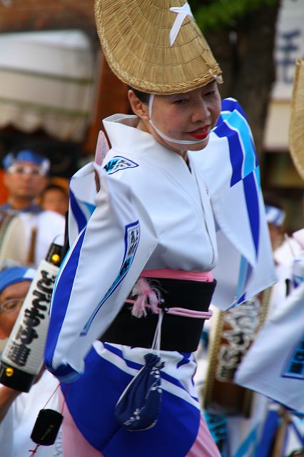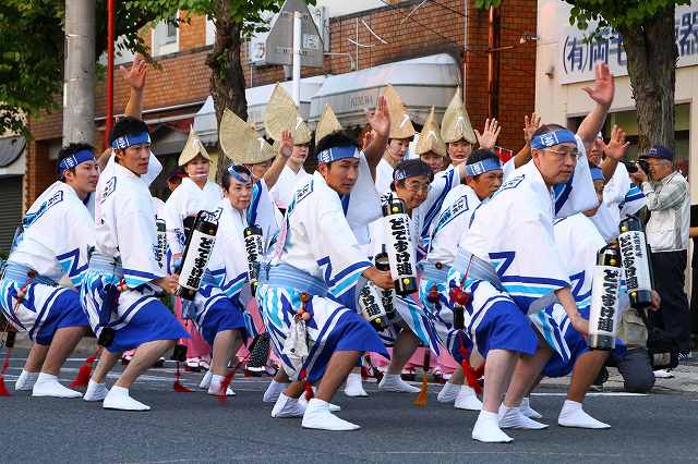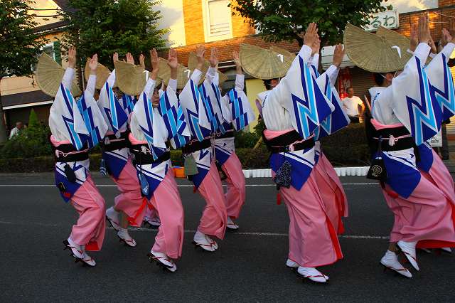 どですけ連の踊りこの人たちは徳島県の阿波踊りに<上州どですけ連>一年毎に行ってるそうです中々の踊りです。お囃子も、篠笛3本・締め太鼓2・大太鼓2・鐘2三味線2と囃子方もしっかりして居ます。色っぽいでしょう 女踊り・・・・(生足で無くストッキングはいてるねぇ~)その方が滑りが良いかなぁ~(男子には解るまいね)8月は穿けないだろうなぁ~良い表情が捉えられたかなぁ~子供連は昨年は凄い踊りの上手な男の子が居たんだが??今年は少ないなぁ~・・・・・チビちゃん此処までは・・・ご機嫌の様子だなぁ~ヤット!ヤット!こんなパフォーマンスも有りました踊りは!どですけ!左のお兄ちゃん昨年も会いました!腰の印籠の紐が長いので揺れて居ます瓢箪も付けてるねぇ~アーラエライヤッチャ! エライヤッチャ! ヨイ! ヨイ! ヨイ! ヨイ!「瓢箪ばかりが 浮きものか 私の心も浮いてきた!」こんな囃子言葉もあるからなぁ~この 「よしこの節」 私唄えますねんよ!よって余計楽しいんじゃわい!← 最後伊予弁ぞな つづく