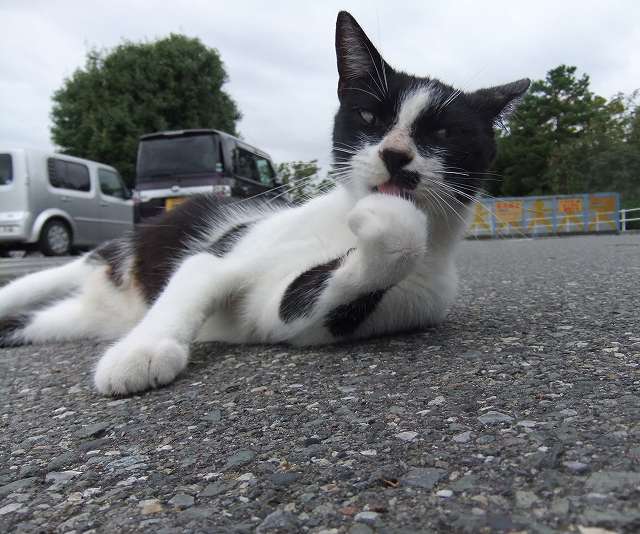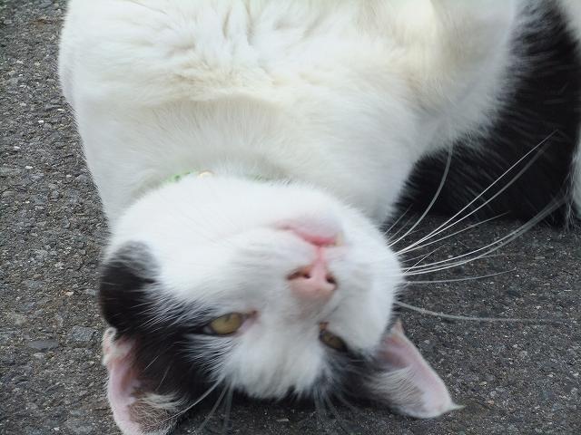 今日はノラでなく少々お品の良いニャンをご紹介!初めてでなく、散歩中よく会うニャンなんですにゃん!「あ~らみこちゃんお久しぶり!元気でなかったの?可愛そうに!」「夏バテか?歳だからにゃん?」そう言ったような気がした!いきなり足元にひっくり返るこのニャン・・・・ニャンたる事!首輪も 鈴も付けてもらって 飼い猫なのである。お品の良い? (証拠)↑みこちゃんこれ面白い・・・コンデジの鎖が気に入ったようで、写してると引っ張る・・・ゆらゆら揺れるのが気に入ったみたい!「何これ!ちょうだい!」遊び出したもっと遊びたいなぁ~ねぇ~遊んでよ カメラの鎖 貸してよ~かさない?通せんぼするから・・・・頑張ったが やっぱり鎖 かしてもらえなくて ションボリ去り行くにゃん ですが それにしても尻尾が長いね良いも~ん・・・いじけて居ます。よっぽど鎖が気に入ったみたいでした。この日は悠悠は居なかったのですが、悠悠が居てもあそびたくって、前にゴロント寝転んで・・・来るにゃんなんです。