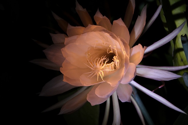 今日は民謡ボランティアの日、朝9時前仲間二人と着物を着せっこして、木崎方面に出かけたのですが・・・初めての所だけど、2度も場所見に行っていたのに、曲がる所を間違えて・・・迷子・・・ (私、知る人ぞ知る方向音痴)仲間に電話を掛ける・・・私・・・サッポロビールの工場が有るでしょう???仲間が落ち着いて、落ち着いて、自分の今居る場所を言って・・・・・いやはや・・・サザエが始まりました・・・・もう~東西南北が解らないんだもの・・・右だの左だの・・・・ぐるぐる回ったもの・・・泣きたい!やっと仲間が迎えに来てくれて・・・・ぎりぎりセーフって所 はぁ~はぁ~しながら・・・・始まりましたでもペットボトルの水飲まないと喋れません参ったなぁ~何度もボランティアやってるが、こんなにギリギリ到着は、初めて・・・反省!でも何とか皆さんに喜んで戴き、アンコールまで戴き・・・区長さんより、こんなに実力があるチームは・・・・と褒められ嬉しかったです。~~~~~~~~~~~~~~~~~~~~~~~~~~~~今夜の月下美人 残りの2輪 奇麗に今咲いて居ます今日は雨も無く風も無く美しい 此れで9輪最後です素晴らしい香りですLEDのみの光りで・・・・合計9輪です 楽しませてもらいました。今日のドタバタを忘れさせてくれました。津軽タント節上手く行ったのよ!良い仲間が居て助けられます。今日の一日に感謝!