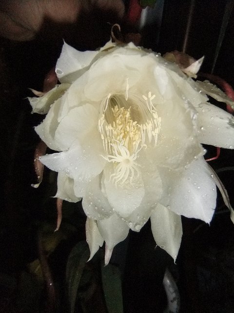 群馬県も台風の通り道でしたが伊勢崎あたりは、あまり被害も無く無事過ぎて行ったようです。咲く予定の月下美人2輪は風雨にもまれてちと可愛そうでした。がちゃんと咲きました。雨の中だったのでコンデジで撮りましたチョット可愛そうでしたお月さんもなしでコンデジのフラッシュで・・・2輪後2輪は明日くらいでしょうか?やっぱり気合が入ってないとお花も可愛そうです、でもあの風雨の中だったから仕方ないね。今日2日は民謡ボランティアの日です7名で 頑張ってきます!