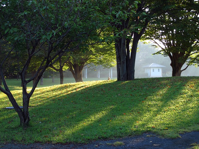公園朝6時30分公園は朝もやで、一杯やったぁ~びっくりするくらいでしたが・・・・あっという間に消えて行ってしまいました朝日の影がきれいでしたまだ もやっています何に見える?みんな公園風景です このつゆが太陽の光で蒸発して靄となっていたようですさんごじゅの実と、お月様をコラボさせてみました芙蓉の花がきれいに咲いていましたあえて逆光で撮ってみましたが・・・芙蓉の花芯・・・・今日の写真全部 「CANON12編」です芙蓉 順光にて・・・今朝は爽やかな朝でした