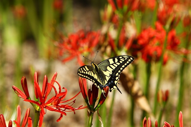 昨日悠悠との散歩の時、ゲットしました、広瀬川のヒガンバナG12の世界本当に午前中は雲一つない、良い天気で一人と一匹でのんびり・・・・青空は良いです 空いっぱいに花火が打ちあがった様です。逆光で太陽にこだわり狙ってみましたがどうかな?野生らしくていいかな?太陽を入れたくて絞りました・・・・太陽にこだわって見た、安定のあるいい場所に入れたくて何度も何度もカメラ位置を移動して撮りましたが私の事ゆえ1時間位はいたかなぁ~丁度広瀬川の土手に上がってゆく道で土手とVの字に草原が入り込み、なかなか良いロケーションだと自分では思いましたが・・・グッと絞ったので、太陽のハレーションもね入ってますが・・・~~~~~~~~~~~~~~~~~~~~~~~~~~~~~~~~~~此処からは常楽寺彼岸花もグッと感じが変わって私の好きな のほほん と暖かなお地蔵様この方は美しい何とも・・・蓮の実です・・・・お寺さんだけあります黒いアゲハも、遠くからゲットしましたがもう羽根がボロボロで可愛そうな感じでした。